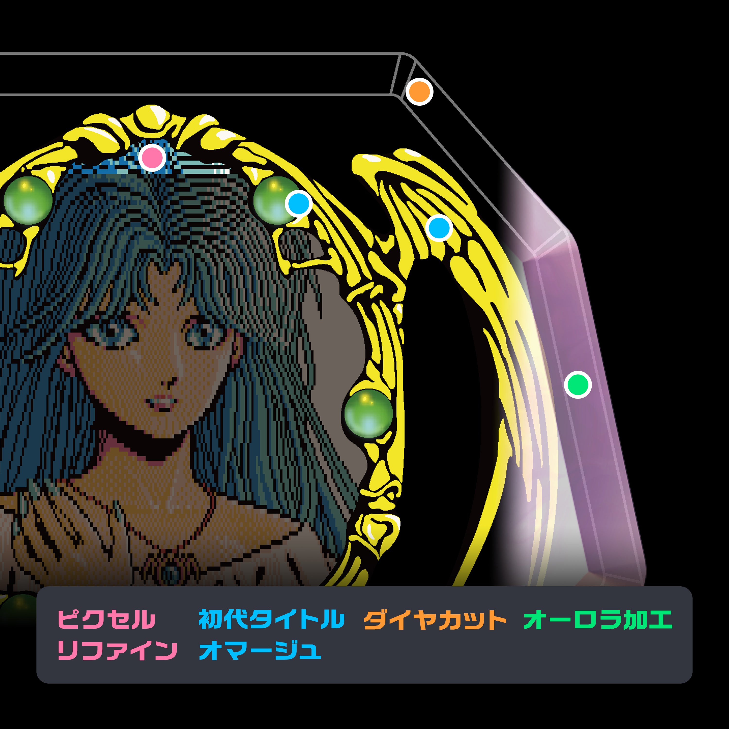 タイトル画面の金の飾り、碧玉を、丹念に写し取る